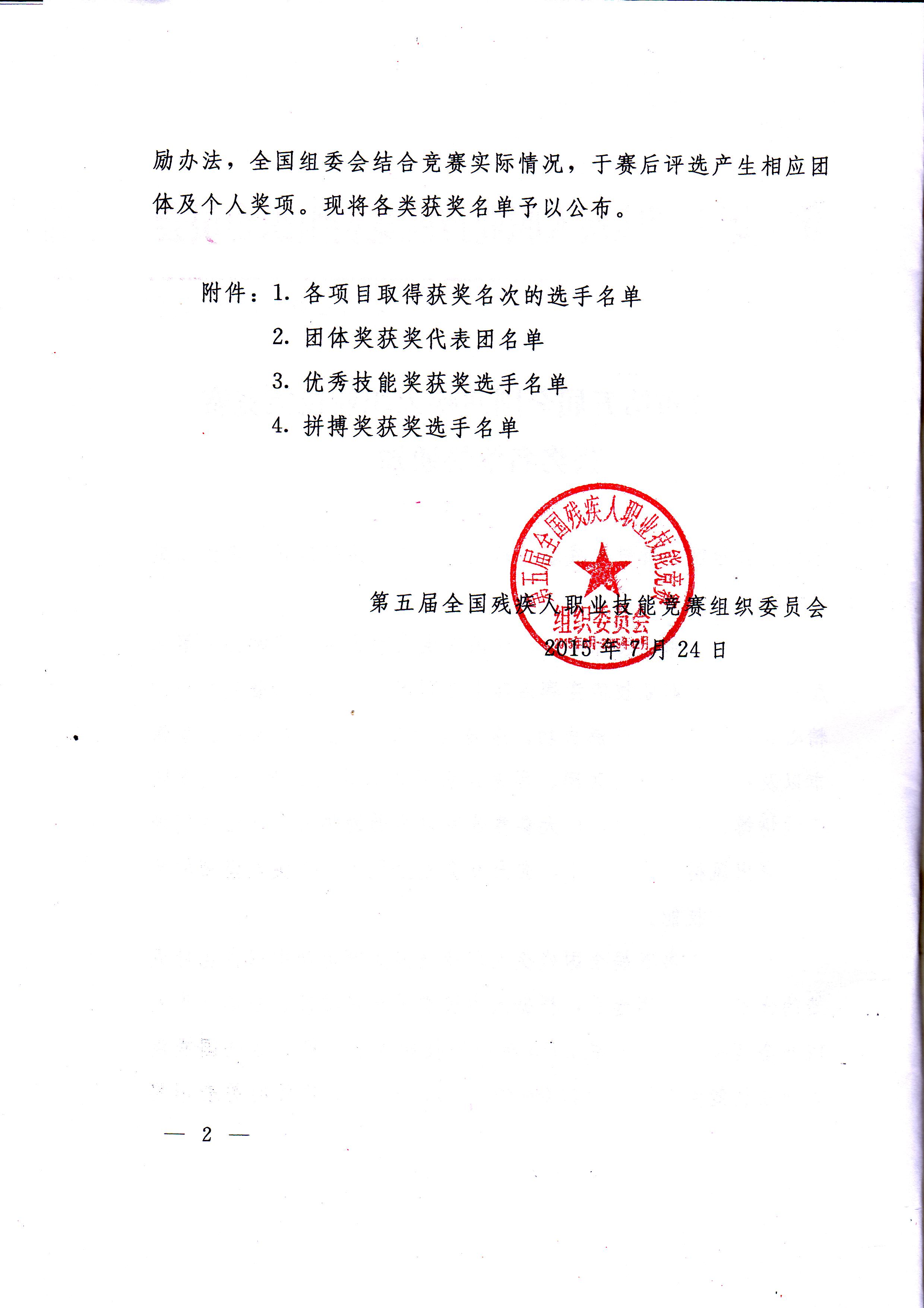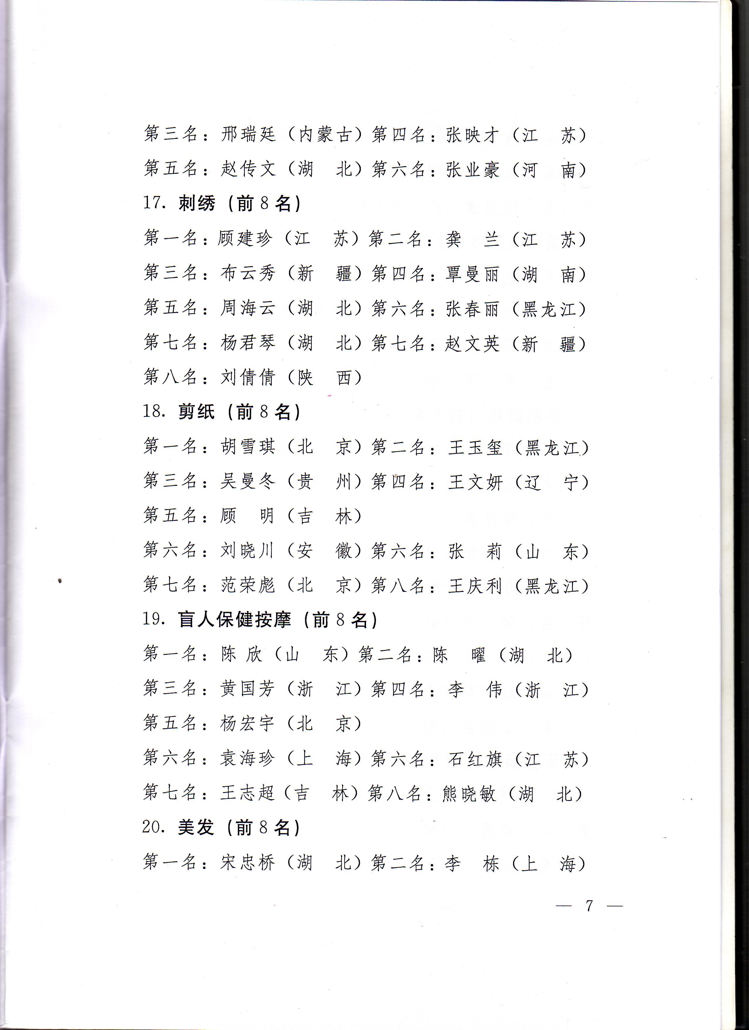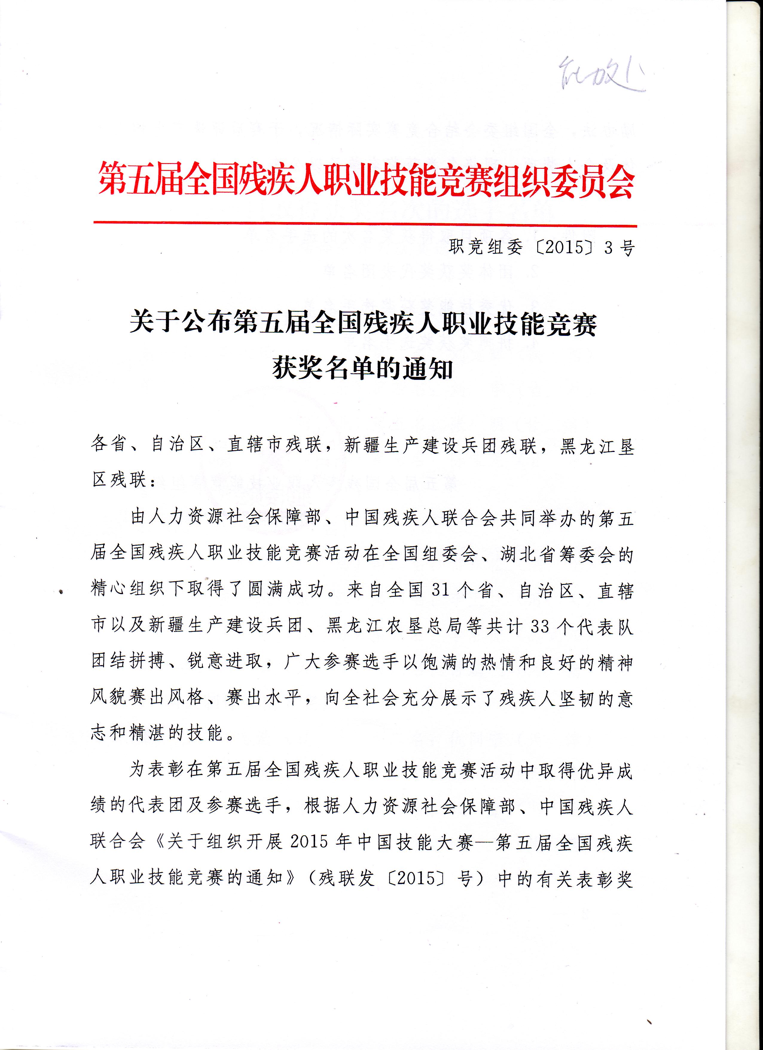 关于公布第五届全国残疾人职业技能竞赛获奖名单的通知