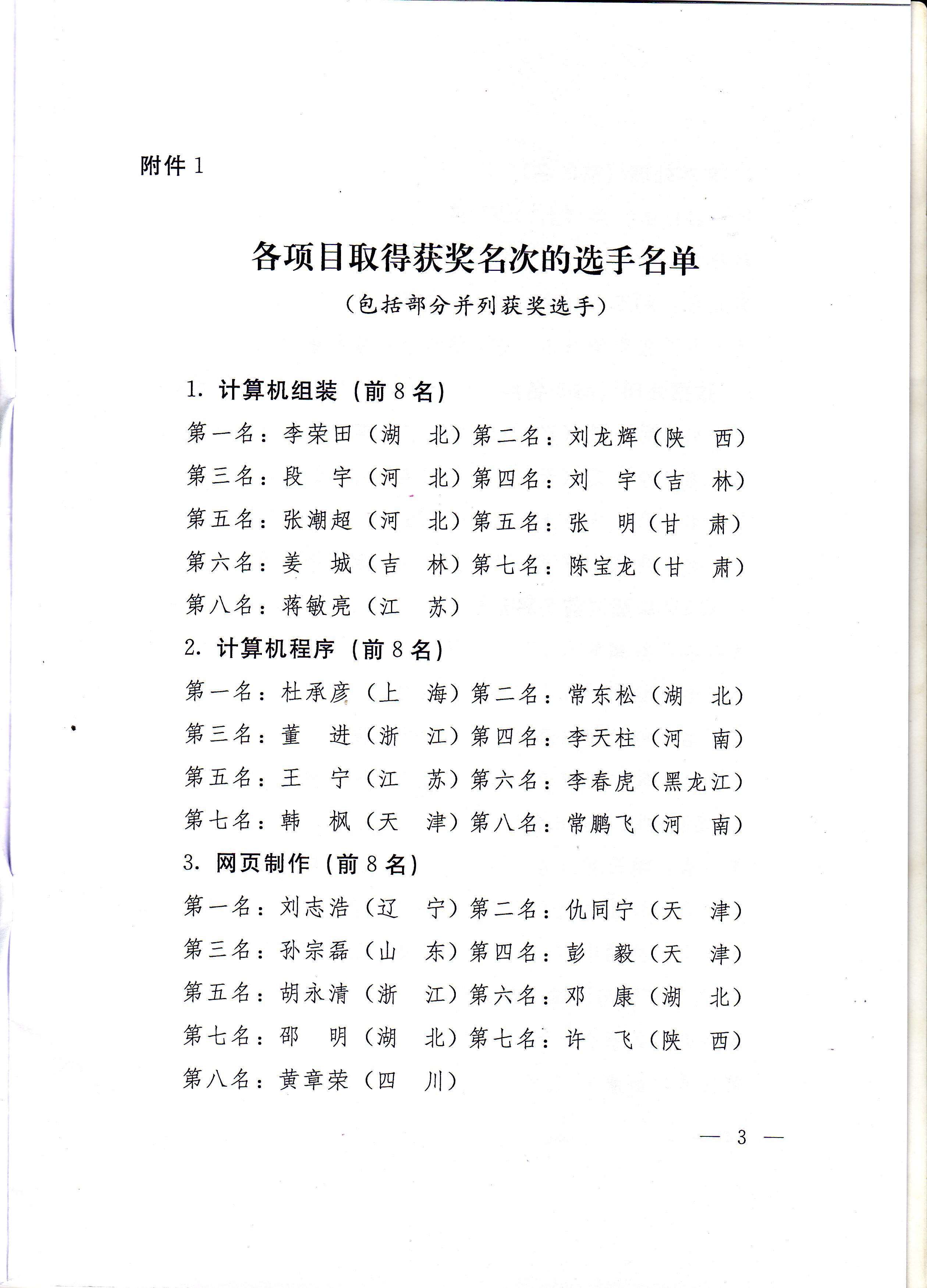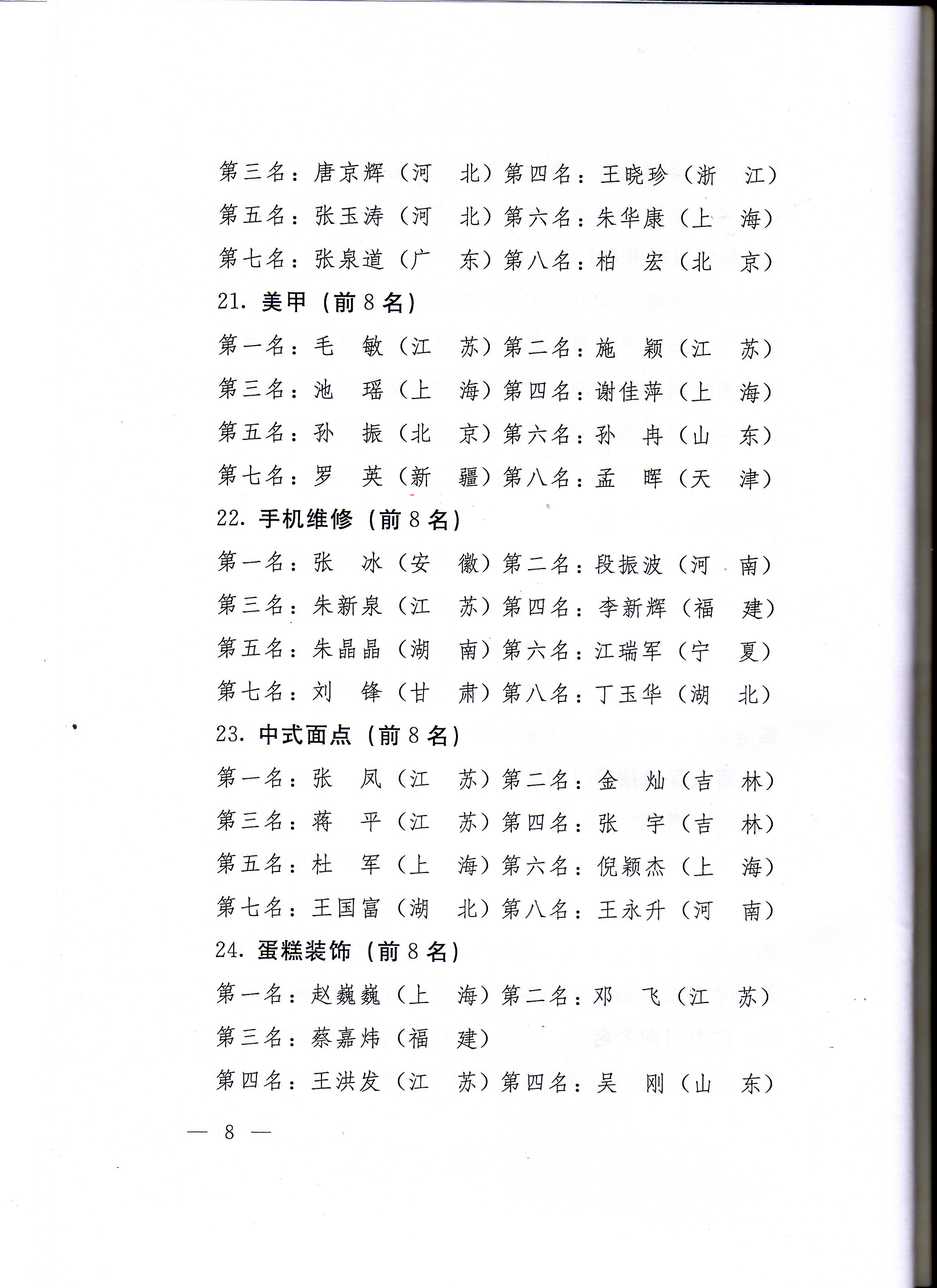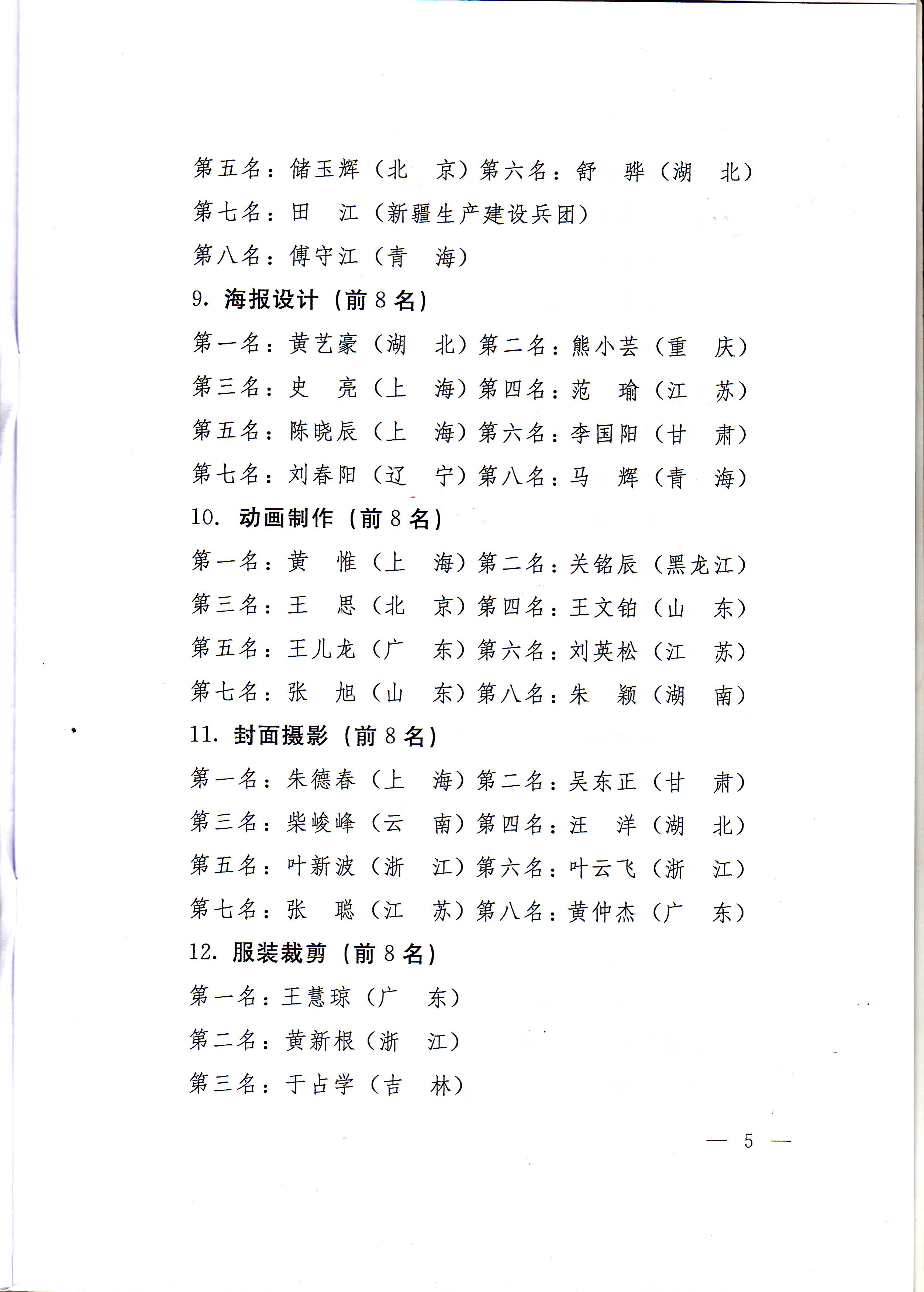 关于公布第五届全国残疾人职业技能竞赛获奖名单的通知