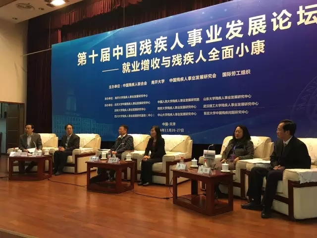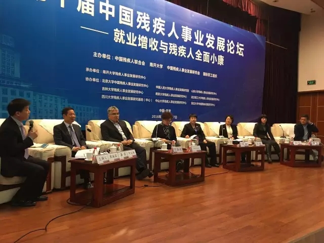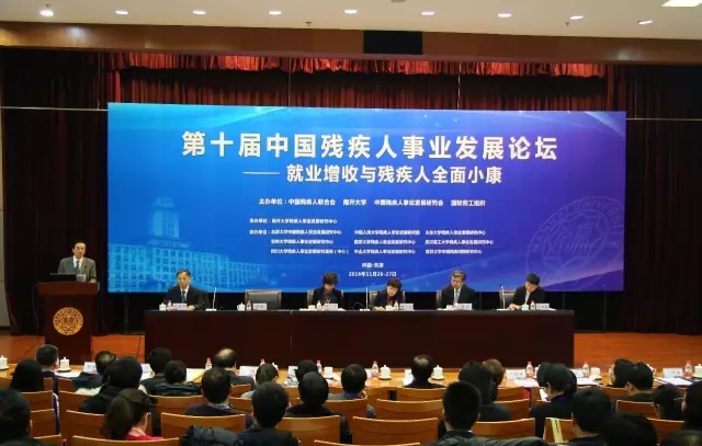 2016年11月26日,以“就业增收与残疾人全面小康”为主题的第十届中国残疾人事业发展论坛由中国残疾人联合会、南开大学、残疾人事业发展研究会共同主办。南开大学校长龚克教授、人力资源和社会保障部张义珍副部长、中国残联程凯副理事长、天津市政府曹小红副市长出席论坛开幕式并致辞。来自国家发改委、民政部等国家部委官员,北京大学、中国人民大学等50多所高校的专家学者和国际组织、知名企业、残疾人就业服务机构以及残疾人、残疾人工作者代表共约300人参与研讨。