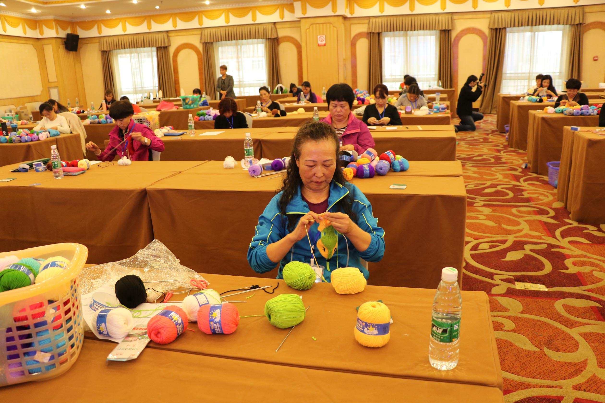 图为我省选手李慧在手工编织竞赛现场