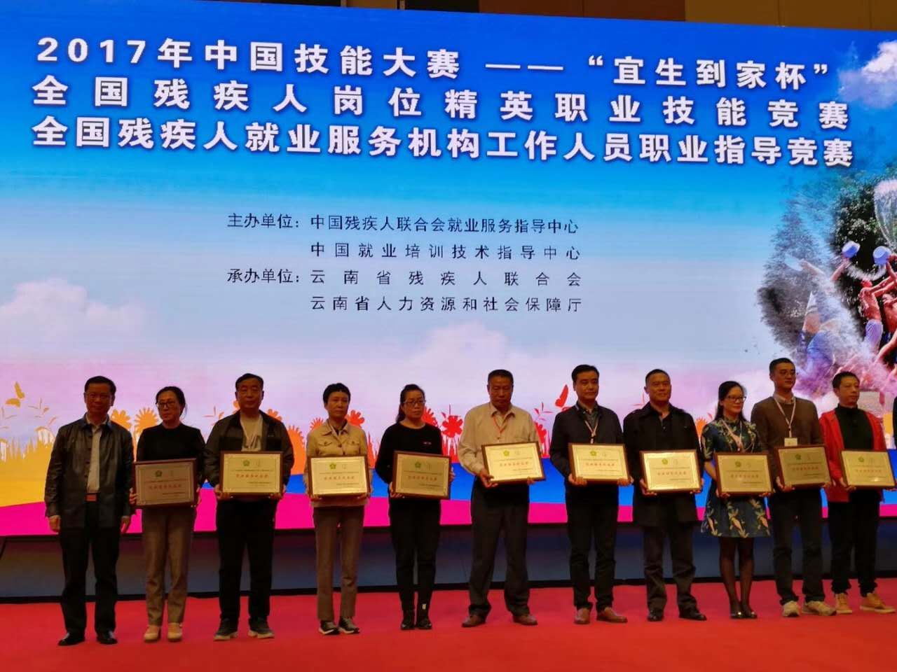 10月23日至26日,2017年中国技能大赛--“宜生到家杯”全国残疾人岗位精英职业技能竞赛暨残疾人就业服务机构工作人员职业指导竞赛在云南昆明举行。本次竞赛由中国残联就业服务指导中心、中国就业培训技术指导中心主办,云南省残联和人社厅承办。来自全国各省(区、市)计划单列市35个代表队的450名选手参加了茶艺、计算机程序、剪纸、手工编织、职业指导等五个项目的竞赛。