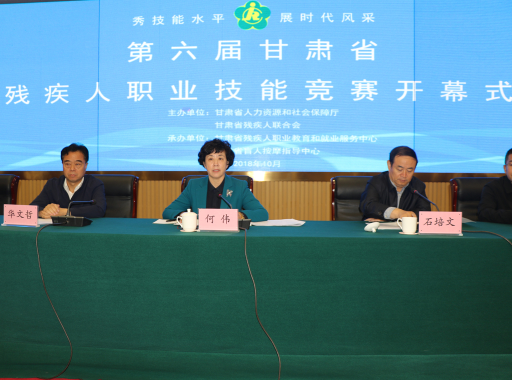 在开幕式上,何伟副省长代表省政府,对本届竞赛的顺利举办,表示热烈的祝贺,向参加竞赛活动的各位残疾人选手和裁判员,致以诚挚的问候,向长期以来关心支持残疾人事业发展的社会各界,表示衷心的感谢。她指出,党的十八大以来,在习近平新时代中国特色社会主义思想指引下,全省残疾人就业工作深入贯彻落实党中央国务院及省委省政府关于提高就业质量和人民收入水平各项决策部署,出台实施了一系列切合甘肃实际的残疾人就业特惠保障与专项扶持政策,残疾人就业创业质量和生存发展状况持续改善,现已建成国家级残疾人职业技能培训基地10多家,年培训残疾人近万人,仅2017年新增残疾人就业创业8000多人;建成残疾人综合服务中心91个,年服务残疾人2万多人次,不仅为保障和改善残疾人民生发挥了重要作用,也为全省经济社会发展和全面小康建设注入了新的动力。