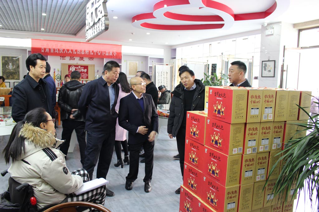 涂强根一行先后对甘肃省残疾人文化创意孵化中心、榆中县残疾人就业扶贫基地、兰州爱心文化服务中心、兰州凡尘安星特殊教育中心辅助性就业店、兰州市城关区重度残疾人托养服务中心、兰州锦亿圣服饰有限公司进行了实地走访调研。在实地调研过程中,涂强根一行与残疾人创业者、残疾人员工等进行座谈交流,就企业经营、发展前景及残疾人的收入、生活等情况进行了详细的了解。随后,调研组调研了兰州市残疾人就业服务机构,深入了解残疾人脱贫攻坚具体举措和实际成效、基层残疾人组织和残疾人就业服务机构运作情况及存在的问题和困难。