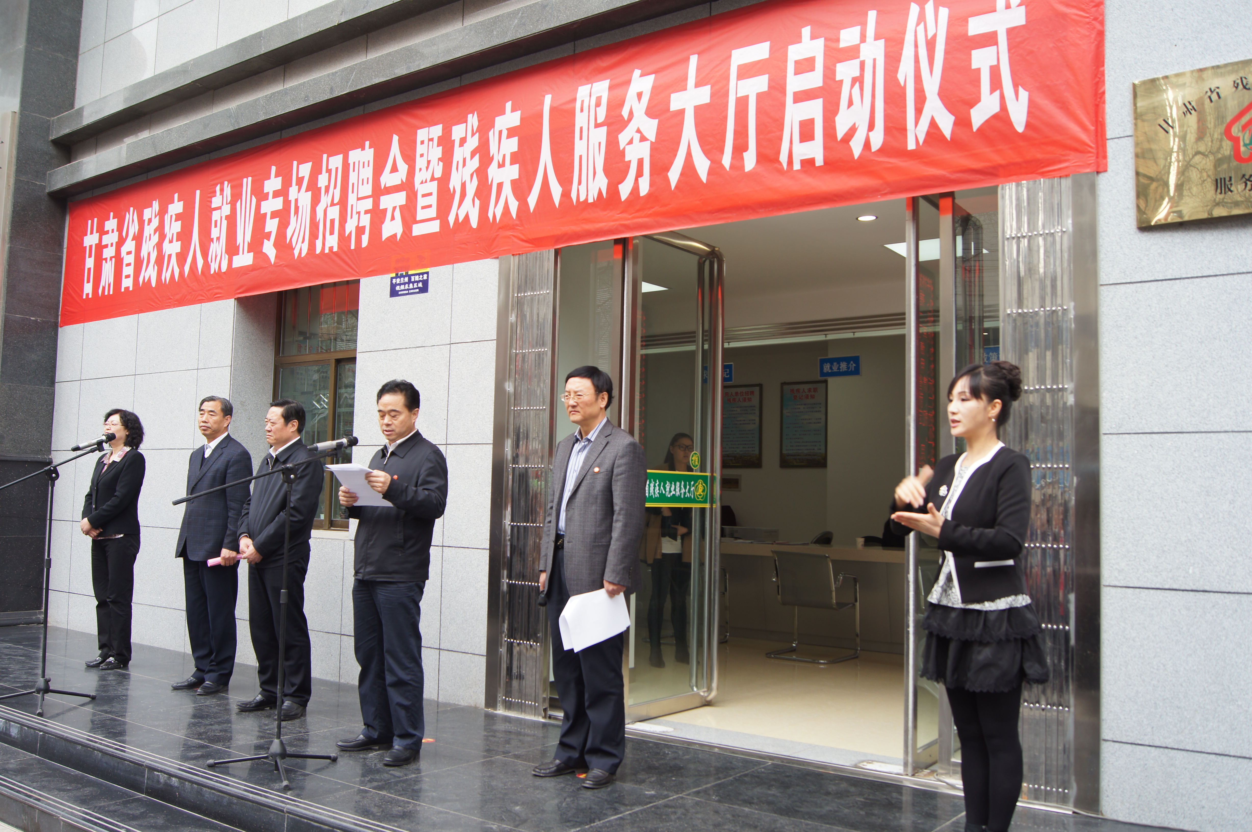 2015年3月31日省残疾人就业服务大厅启动仪式,省政协副主席李沛文、省残联党组书记、理事长华文哲及省人社厅领导出席并宣布首届甘肃省残疾人招聘会正式开始。